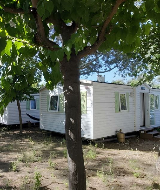 Cosy holidays! The mobile homes (4 people) have 2 bedrooms, a fully equipped kitchen, a bathroom and a separate toilet. Surface area: 26 m²